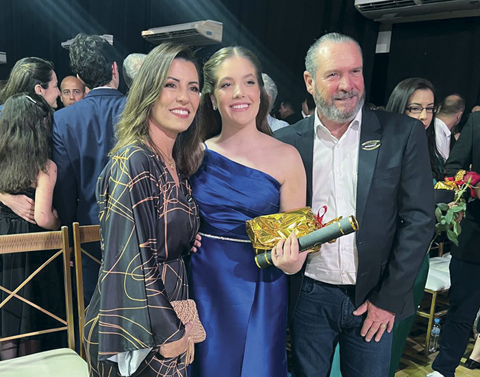 A jovem Yasmin Bento formou-se recentemente no terceirão do Coração Feliz e recebe nosso carinho, acompanhado dos votos de muito sucesso nos próximos passos da vida. No registro, Yasmin aparece ao lado dos avós, que sempre foram grandes incentivadores: a filantropa Marilene Bento e Gelson Bento, vereador e presidente da Cergal.