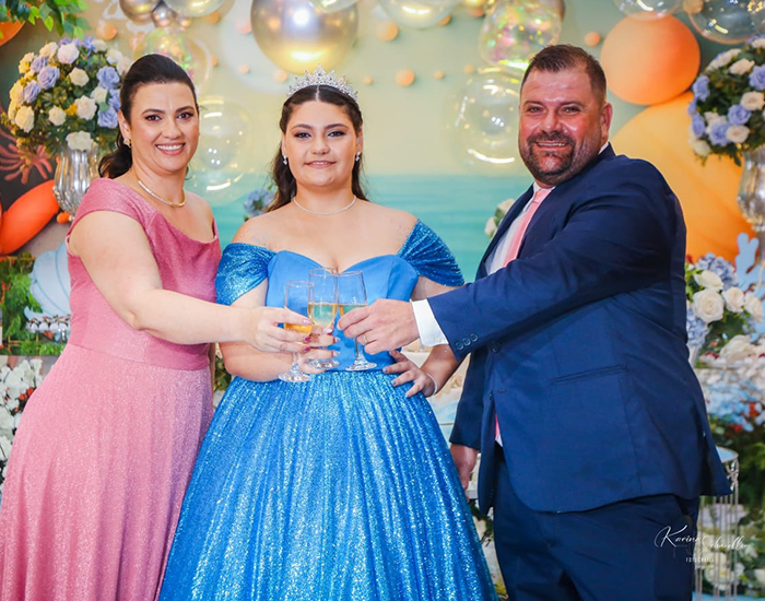 Rayssa Dela Vedova celebrou seus 15 anos no dia 30 de dezembro. Filha de Jaine de Bona Dela Vedova e Vitor Dela Vedova, Rayssa é uma menina muito especial para a família, estudiosa e com um futuro brilhante pela frente. Os pais comemoram com orgulho essa data tão significativa e desejam que essa nova fase seja repleta de conquistas e felicidade.