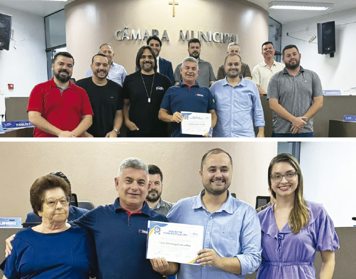 O empresário imbitubense Luiz Gonzaga Carvalho, conhecido como Zaga da Inkor, foi homenageado na noite de quinta-feira (4) com uma moção de congratulação na Câmara de Vereadores de Imbituba, proposta pelo vereador Henrique Melo. A sessão contou com a presença de familiares, amigos, moradores e colaboradores, que prestigiaram o reconhecimento pela trajetória de sucesso do empresário e pelo lançamento de sua biografia “Do chinelo ao sucesso, a máquina não para”, escrita pelo jornalista Rodrigo Speck. Com mais de 2 mil exemplares impressos, o livro tem finalidade totalmente social: toda a renda será destinada à Fundação Inkor, que oferecerá, a partir de 2026, cursos de profissionalização para jovens de Imbituba.