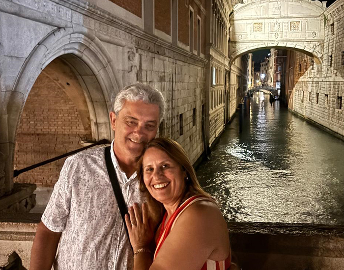 O belo e aventureiro casal Rachel Alves e Adalberto Reis viveu dias encantadores em uma viagem pelos cartões-postais da Itália, desfrutando de momentos inesquecíveis em cenários que misturam arte, história e romance. Queridos e admirados na sociedade tubaronense, Rachel e Adalberto são presença marcante na vida social da Cidade Azul, sempre envolvidos em causas nobres e projetos solidários. Nos registros, o casal aparece em Florença e Veneza, irradiando alegria e sintonia!
