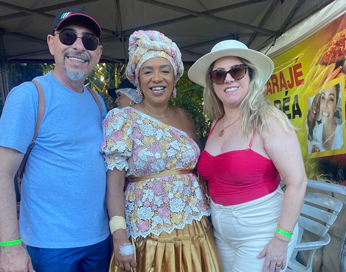 A querida cabeleireira Ivone Amaral celebrou mais um ano de vida e recebe nossos cumprimentos especiais neste belo registro ao lado do esposo, Luiz César Fernandes. O click foi feito em Porto Seguro (BA), onde o casal aproveitou o clima de festa e descontração, saboreando um autêntico acarajé com muito estilo e alegria. Felicidades e muitos anos de vida!