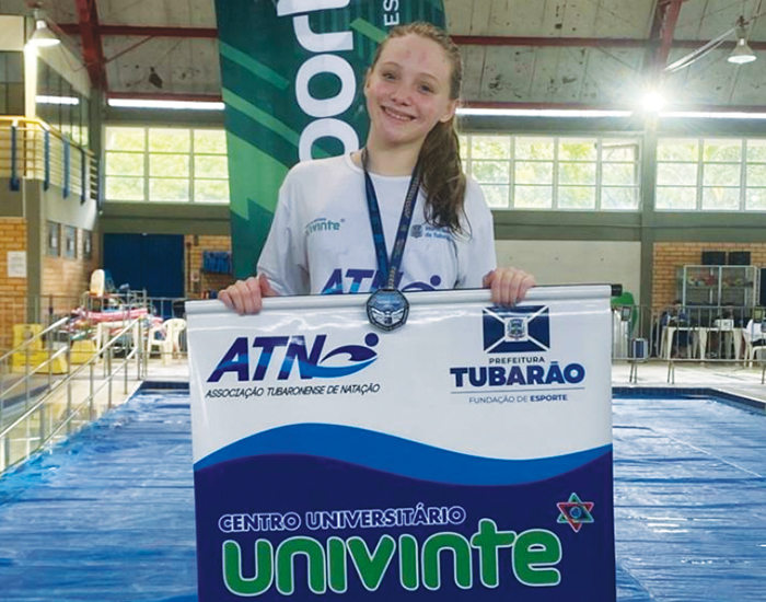 Tia Sandra, tia Iara e a vovó Sílvia não escondem o orgulho da jovem Ana Cargnin, que voltou a brilhar nas piscinas. A nadadora venceu mais uma competição, desta vez conquistando o ouro nos 50 metros livre. Associada da Associação Catarinense de Natação, Ana representa com talento e dedicação a nossa cidade pela Fundação Municipal de Esporte.