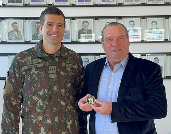 Em visita à 14ª Companhia de Engenharia de Combate do Exército, em Tubarão, o presidente da Cooperativa de Energia Cergal e vereador do município, Gelson Bento, foi agraciado com uma honraria especial, entregue pelo comandante da unidade, Capitão Vinícius Coelho Machado. A distinção reconhece o compromisso com a comunidade e reforça os laços de respeito e cooperação com o Exército Brasileiro.