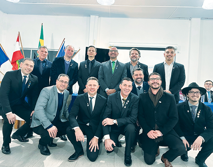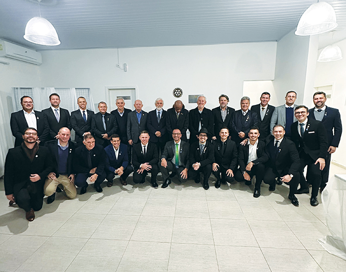 Na noite festiva do dia 2 de julho, na Associação Casa do Rotariano (Acart), Luciano Meneses Mendes foi empossado como presidente do Rotary Clube Tubarão Sul para o ano rotário 2025-2026, sucedendo Pedro Gonçalves. Natural de Tubarão e morador de Capivari de Baixo, Luciano tem 43 anos, é engenheiro mecânico e atua há mais de 25 anos na área de manutenção industrial. Rotariano desde 2021, é casado com Sibele Silveira Rodrigues, também rotariana, integrante do RCT Luz. Esportista e engajado em ações sociais, traz consigo a energia e o compromisso necessários para liderar esse novo capítulo no clube. Parabéns e votos de um excelente mandato. Nos registros, Luciano e a esposa, Sibele, ao lado do antecessor e atual vice-presidente do RCTS, Pedro Gonçalves, acompanhado da esposa, Cintia; a diretoria completa empossada; e por último, todos os companheiros do clube.