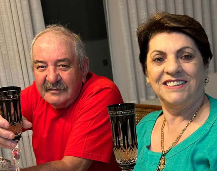 Os respeitados empresários tubaronenses Alba Lígia da Cruz Barbosa e Valmor Benedete Barbosa, casal de notável referência no ramo madeireiro da cidade, estão em festa!