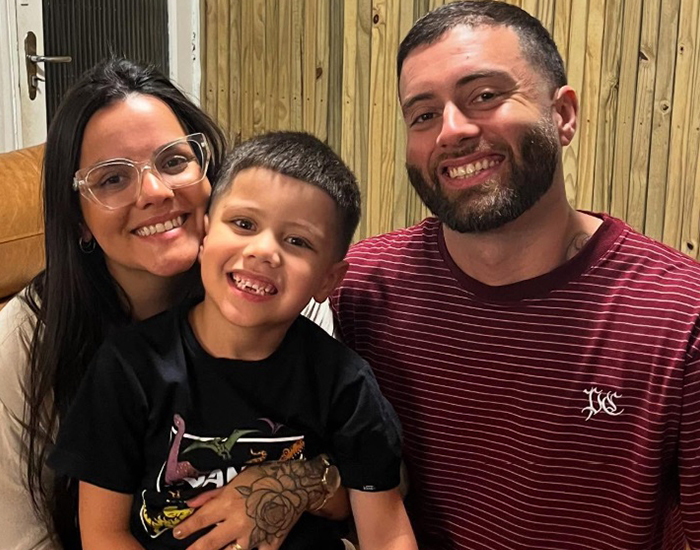Na imagem, ela aparece ao lado do seu príncipe, o pequeno Dom, e do amado Diogo — um trio que irradia afeto e união!