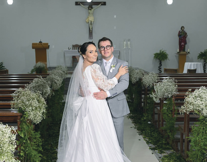 Os noivos Walessa Pereira e Jone Santos celebraram recentemente o amor em uma cerimônia repleta de emoção e beleza. Walessa, contadora e filha do tradicional contador tubaronense Walmor João Pereira e Alaide Meurer Pereira, uniu-se a Jone, filho de Edison de Oliveira Santos e Vilma Gomes Santos, em um momento inesquecível. A cerimônia aconteceu na Igreja São Judas Tadeu, no bairro Dehon, seguida de uma festa encantadora no Clube 29 de Junho, marcada por muita alegria, amor e celebração.