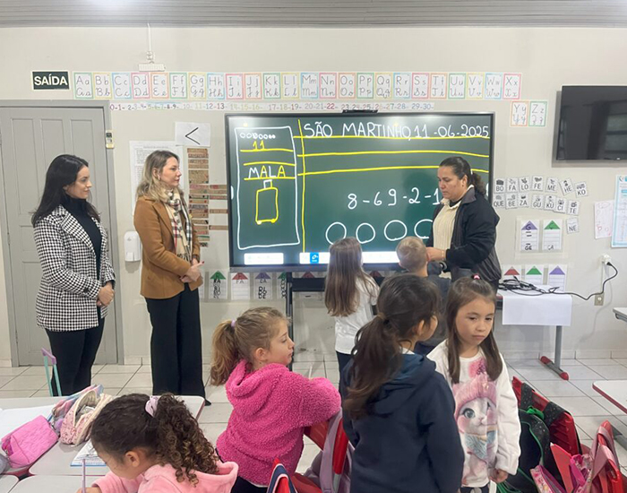 A educação municipal de São Martinho deu mais um passo rumo à modernização do ensino. A prefeita, Anelise Wiemes, e a secretária de Educação e Esportes, Raquel Feller, visitaram a Escola Rodolfo Rocha para acompanhar de perto a utilização das novas telas interativas adquiridas para a rede de ensino. Ao todo, foram investidos R$ 130 mil na compra de nove telas, que já estão sendo utilizadas nas salas de aula.