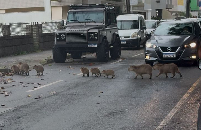 Além de viralizar nas redes sociais, o grupo de capivaras que aparece em vídeo atravessando a avenida José Acácio Moreira, em Tubarão, virou notícia estadual. As imagens que chamaram a atenção foram feitas pelo jornalista Luiz Henrique Fogaça. O grupo de 10 capivaras foi visto próximo à UniSul.