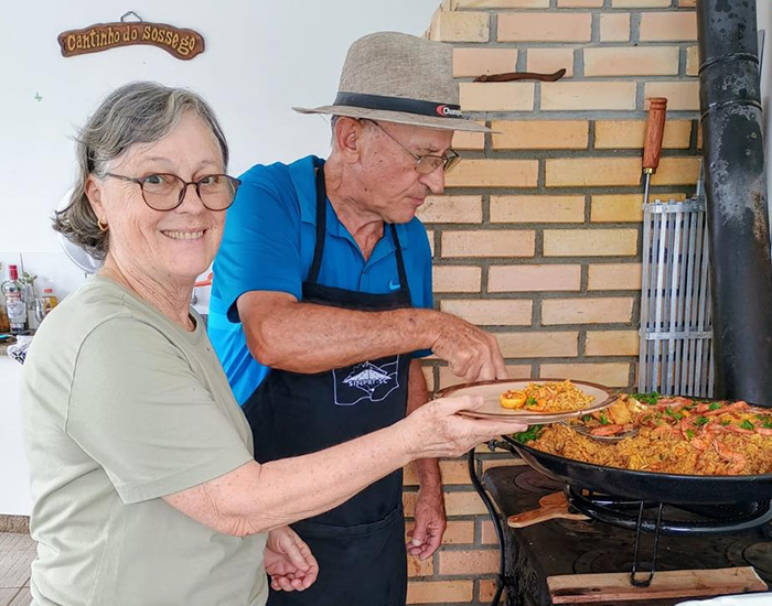 O mestre Benito Botega, para bem servir e satisfazer com muito cuidado e dedicação a querida e adorável esposa, Ivete, preparou uma paella especial para comemorar, em família, o aniversário dela. Isso, sim, é o que se pode chamar de um marido dedicado e generoso. Ela merece...