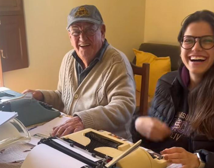 O nosso querido professor das letras Benjamin de Oliveira Barreto tem na poesia sua maior inspiração. Prestes a comemorar 93 anos de uma longa vida muito bem vivida, ele diariamente, com sua inseparável máquina de escrever, encontra os mais belos dizeres como: “Vou te contar um segredo; Para que tenhas um feliz noivado; Só ponha a aliança no dedo; Pra quem na alma já esteja casado.” Sempre ao lado da amada neta, Marina Barreto, que, além de ser sua fã, é a maior incentivadora do querido avô. E o melhor é que já no próximo ano, como médica formada, ela poderá se dedicar ainda mais para inspirar e bem cuidar do amado e querido avô. Um lindo exemplo do fraterno e eterno amor...