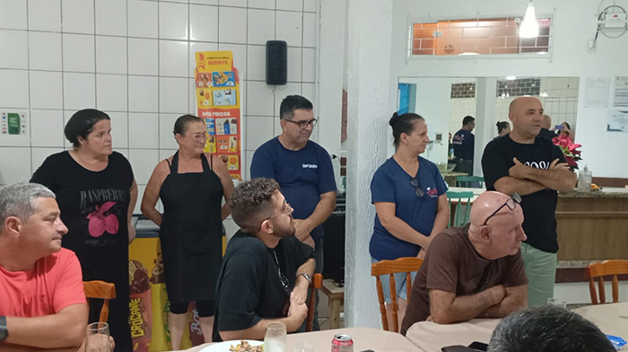 Durante a última semana, a Rádio Difusora Bandeirantes, de Imbituba, reuniu sua equipe no Restaurante Castro´s, na famosa Cancha, para a sua confraternização anual, comandada pelo diretor-gerente Alexandre Durval Varella. Foi uma noite agradável e de fortalecimento das amizades da equipe 100.3, a emissora dos nossos corações. O evento contou com as presenças de Teresinha Osmar; Denise e Maicon Nascimento, com a filha do casal, Luane Nascimento; Charles e Tê David, com a afilhada Amábile; Luiz Antônio e Inês Brescianini; Simony e Léo; Ney Bernarec; Álvaro e a filha Natieli; João Lourenço; Magdiel Boaventura e Lari com o filho Benício; Venaldo Farias; Sidinei e Elsa Souza; o gerente Alexandre, com a mãe, Cleusa Araújo; Pretta e o colunista. Foi uma noite de muita conversa boa, gargalhadas gostosas, algumas piadas e um cardápio top, descoberto pela nossa diretora comercial Tere Osmar e assinado pelo mestre de cozinha Sandro Martins, e administrado pelo casal proprietário do Castro´s Restaurante, Dalnei e Kátia Castro. A equipe Difusora Bandeirantes de Imbituba já pensa na próxima confraternização.