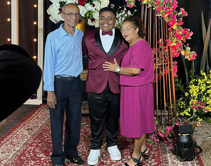 Dejair e Célia Santos, casal Bodas de Ouro deste sábado, dia 30, com o neto João Victor, em Siderópolis