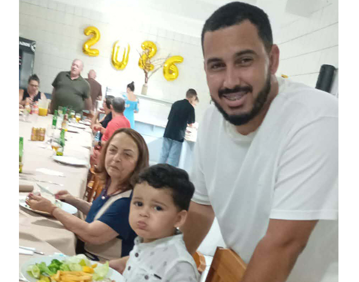 Magdiel Boaventura com o filho Benício, em Imbituba