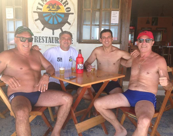 Os bons momentos permanecerão vivos para sempre. Na foto, Hugo Cardoso, Cesca, Zolnei Bressan e ele, fazendo o que mais gostava. Vá em paz, parceiro!