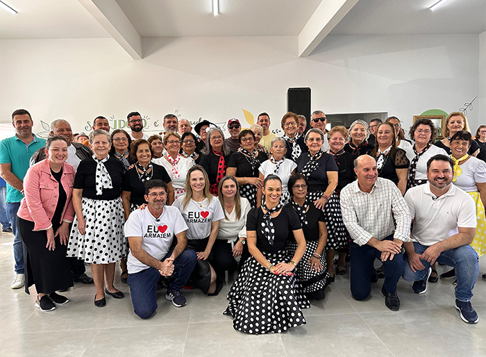 O governo de Armazém vive um grande momento, com diversas ações e obras importantes. Agora foi a vez de inaugurar o tão sonhado Centro de Convivência dos Idosos – denominado Schirley Maria Scharf Wensing, primeira-dama do governo de seu esposo, Tadeu Wensing, que esteve presente e agradeceu a administração Luiz Mendes (PSD) e Guilherme Penacho (PL) e aos vereadores pela homenagem. O prefeito ressaltou a importância da nova instalação. “Cada obra nossa inaugurada tem uma história e um significado diferente. Mas essa é especial, pois quem irá usufruir são as pessoas que tiveram uma vida toda de trabalho, que contribuíram com o crescimento do município e agora aproveitarão a melhor idade no aconchegante local”, disse. O Centro foi viabilizado pelo governo do Estado, com emenda de R$ 700 mil do deputado Zé Milton (PP) e contrapartida da prefeitura de R$ 281 mil. A inauguração foi organizada pela secretária de assistência social, Cleimar Machado, e sua equipe. O ato foi prestigiado também por familiares da homenageada, secretários, vereadores, ex-prefeitos e representantes de associações, entidades e ainda o padre Vilmar Feuser, que abençoou o local.