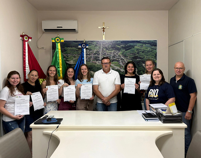 O prefeito Lindomar Ballmann deu posse a sete novas professoras que passam a compor o quadro de docentes efetivos do município de Rio Fortuna. As profissionais atuarão nas áreas de Educação Física e Pedagogia, fortalecendo a rede municipal de ensino e contribuindo diretamente para a qualidade da educação oferecida aos estudantes.