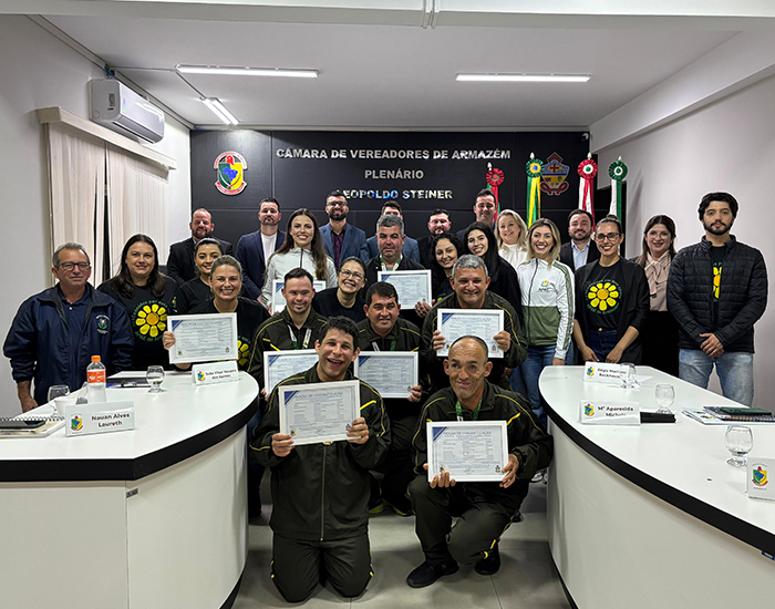 Uma noite de reconhecimento, emoção e muito orgulho! Os vereadores de Armazém entregaram uma Moção de Congratulação aos atletas da Apae em homenagem à conquista da medalha de ouro na modalidade Basquete Masculino - Deficiência Intelectual, durante a 23ª Olimpíada Estadual das Apaes, realizada em Chapecó. A proposta foi da vereadora e presidente da Câmara, Andresa Machado da Silva, com aprovação unânime dos demais vereadores. A entrega aconteceu na última sessão ordinária, com a presença da equipe técnica, professores, motorista e treinadoras, que também foram homenageados. Os atletas de Armazém que brilharam em quadra foram: Mateus Constante Felisberto, José Moraes Neto, Ricardo Melo Dutra, Josoé Mendes Ferreira, Ronaldo André Alves, além de José Francisco Bruno Júnior (Juca), que competiu no arremesso de peso - síndrome de down, e André Medeiros da Rosa, medalhista de prata no revezamento 4x100 - síndrome de down. Eles integraram a delegação das Apaes do Conselho Encosta da Serra, ao lado de atletas de Braço do Norte, Grão-Pará, São Ludgero, Rio Fortuna, Gravatal, Orleans e São Martinho. “Esses jovens atletas revelam talento, disciplina, garra e espírito esportivo, representando com honra e orgulho o nosso município”, destacou a vereadora Andresa.