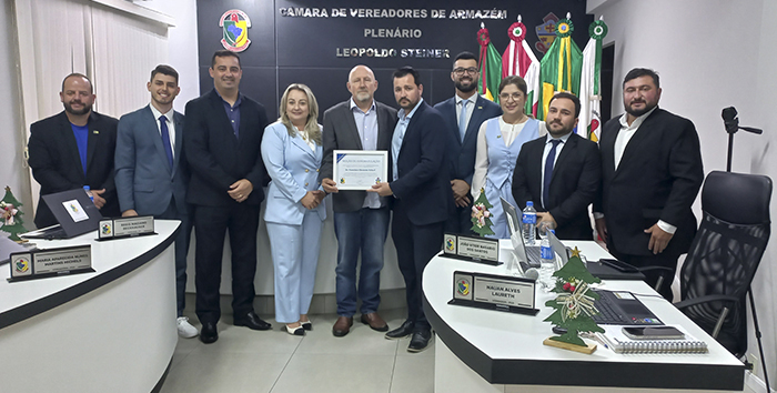 O médico cardiologista Francisco Clemente Scharf, o Dr. Chico, foi homenageado com uma Moção de Aplauso pela Câmara de Vereadores de Armazém, proposta pelo vereador Jamir Michels Mendes e aprovada por todos os edis. A comenda reconhece os relevantes serviços prestados ao município e a trajetória profissional exemplar, motivo de orgulho para toda a comunidade. A homenagem contou ainda com a presença do prefeito Luiz Mendes, do ex-prefeito Jaime Wensing, familiares e amigos. Em 2016, o médico recebeu o Título de Cidadão Armazenense. Justas homenagens!