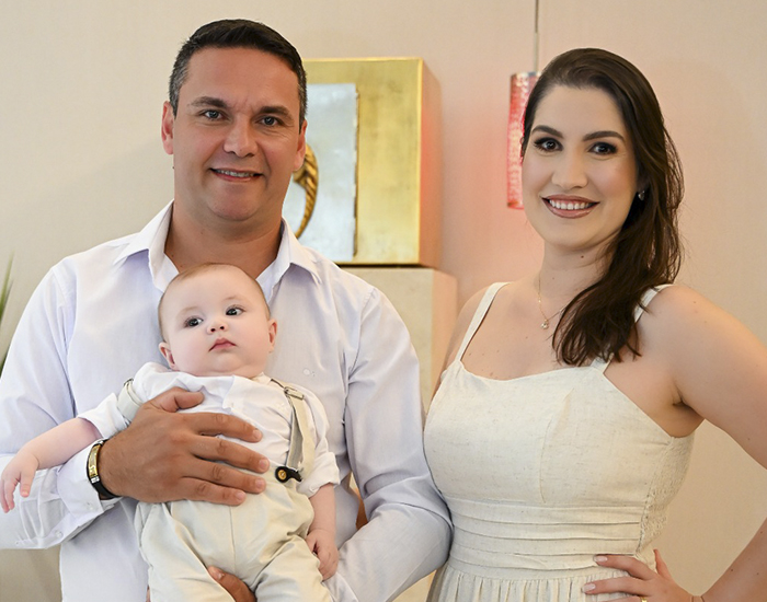O fofíssimo Breno Vargas Maria no seu batizado, com os papais amados, Halan e Camila