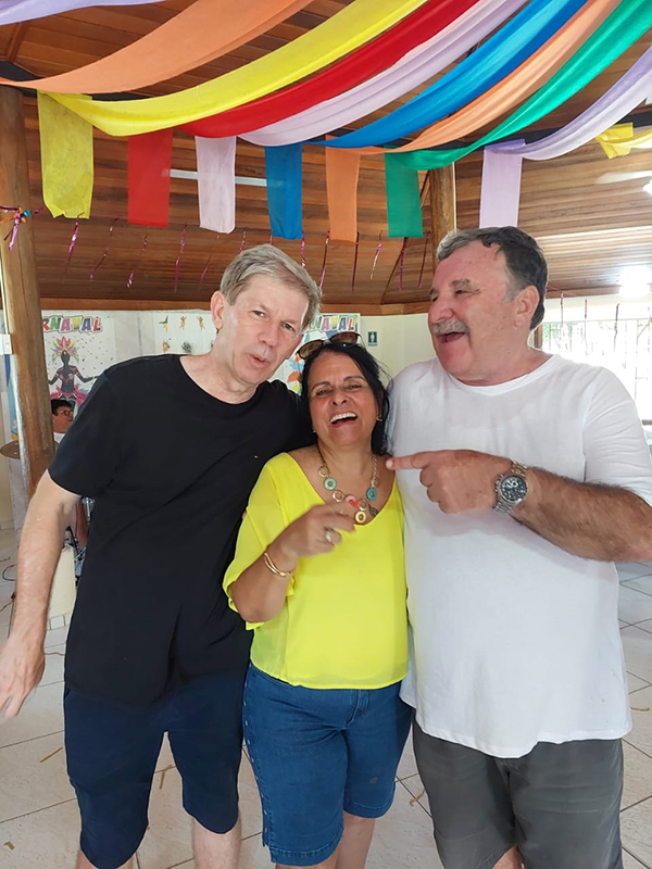 A linda e sempre amada Lígia Teixeira Ferreira emoldurada pelo maridão, o adorável Dimas, e pelo reitor da UniSul e grande amigo, Mauri Heerdt, no Feijoaço, evento realizado há 33 anos no domingo de Carnaval, nos Açores, em Florianópolis.