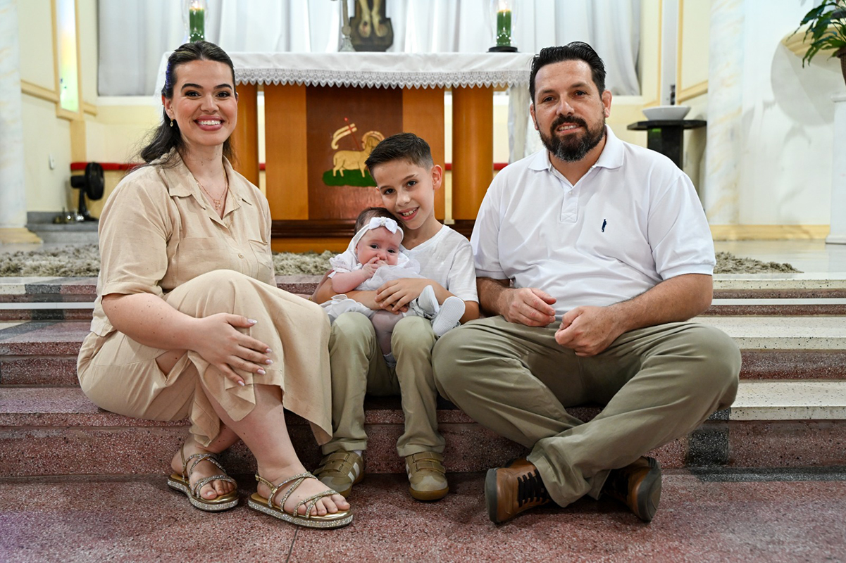 Os papais Julia e Diego e o mano José, cheios de mimos no batizado da linda Lívia... em momento para ser eternizado.