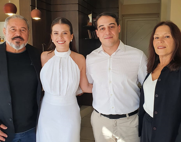 Helena e Fábio, lindos e apaixonados, agora já casadinhos, e com as bênçãos dos pais do noivo, os queridos Robson e Eliane.