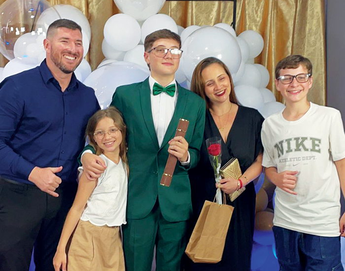O gatinho João Lucas Boaventura todo orgulhoso em sua formatura junto da superfamilinha, os pais, Lucas e Luana, e os manos, Maria e Pedro.