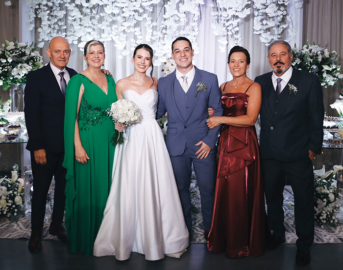 O ano está terminando de forma especial para essa família querida. Foi em 2025 que o lindo casal Helena e Fábio disse o sim mais apaixonado da vida deles, sob as bênçãos dos pais, Sérgio e Janine e Eliane e Robson.