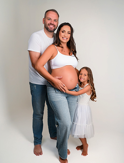 O casal Renan e Mariely, com a linda filha Ana Clara, à espera da caçulinha Isabela.