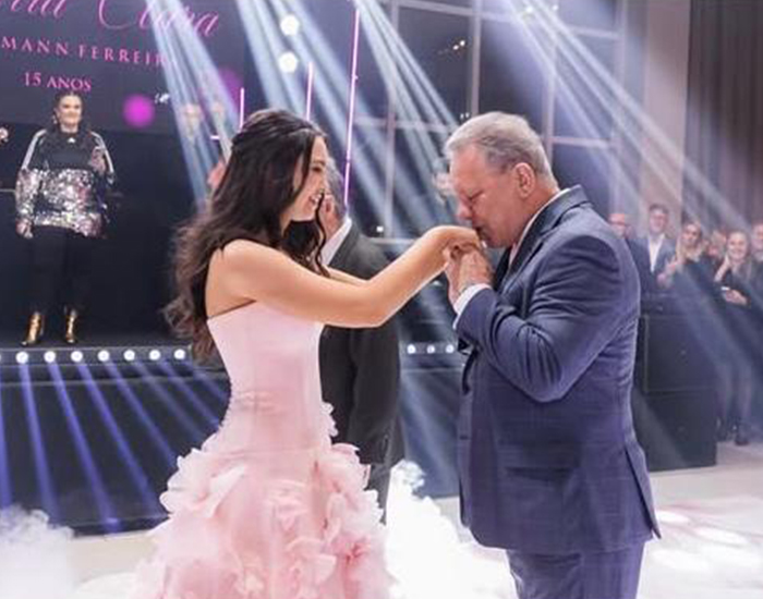 Assim, linda demais, Maria Clara Willemann Ferreira comemorou seus quinze anos, com uma festa perfeita, idealizada pelos superpais, Fábio e Rita, e com um momento cheio de emoção e carinho com o padrinho, Joares Ponticelli.