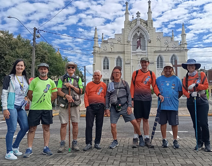 A peregrinação a lugares sagrados une dois roteiros entre RS e SC. Após a Santa Missa e bênção dos cajados no Santuário Sagrado Coração de Jesus e a visita e orações junto ao túmulo do Padre João Batista Reus, um grupo de peregrinos ruma em direção ao Santuário de Madre Paulina. O percurso, que sai de São Leopoldo/RS, passa por vários municípios gaúchos, adentra SC pela Serra da Rocinha e aporta, em 27 de março, na cidade de Imbituba, Litoral Sul catarinense, terra do primeiro milagre, onde são recepcionados pela miraculada Dona Eluiza Rosa de Souza, fruto do primeiro milagre de Santa Paulina, quando outro contingente se integra ao grupo. O trajeto passa, no Domingo de Ramos, pelo santuário de Beata Albertina, em São Luiz, e então segue por outras comunidades. E na manhã do dia 3/4, Sexta-feira Santa, as Irmãs da Congregação das Irmãzinhas da Imaculada Conceição (Ciic) os recepcionam na capela de Vígolo, com mensagens de fé e devoção vivenciadas pela Santa, após caminharem por 687 km em 26 dias.