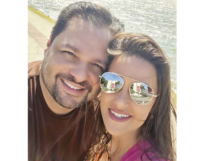 A querida Simone Hofman, comemorando hoje mais um aninho de vida, recebendo o carinho do maridão, Diogo. Parabéns!