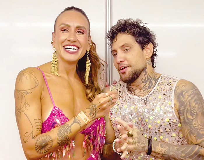 A talentosa cantora e apresentadora Carol Morena, que arrasou com sua animação no Bloko Rosa, entrevistando a atração da festa, o cantor Rafa Jammil.