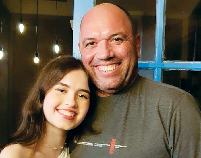 O coronel Vilson Sperfeld, celebrando aniversário, recebendo o abraço dos muitos amigos e o carinho especial da filha Anna.