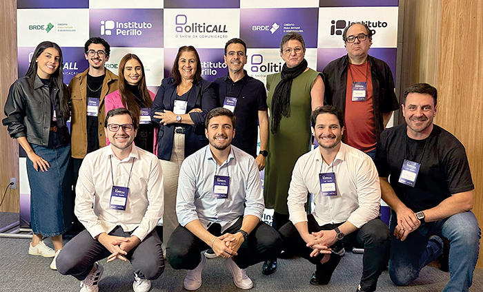 Galera da assessoria de imprensa da prefeitura de Tubarão, que participou do Politicall, evento direcionado à comunicação pública, ocorrido em Florianópolis. Prefeito Soratto e o secretário Jó Kruger acompanharam a equipe.