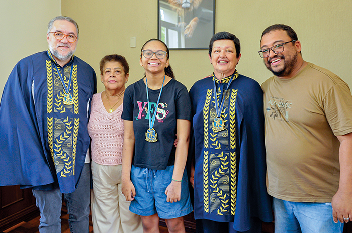 Em recente solenidade na prefeitura de Capivari de Baixo, a presidente da Academia Tubaronense de Letras, professora Marilene Lapolli, o colunista e a viúva do saudoso escritor Geraldo Brasil, dona Neide de Araújo Brasil, junto com o filho Fernando e a neta Alice, que foi a inspiração de Geraldo para o livro “Redescobrindo os encantos da vida”.