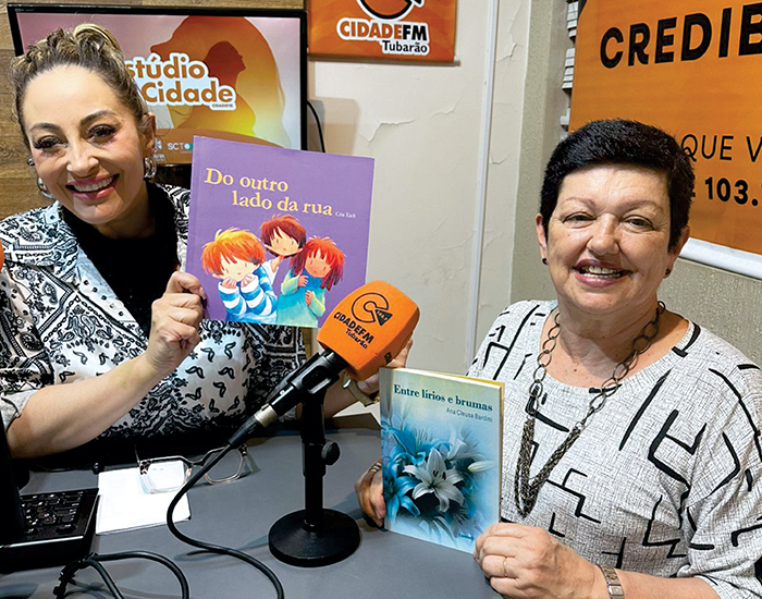 A apresentadora Joice Baricalla, que todas as terças-feiras fala de literatura no seu programa Estúdio Cidade, com a participação mais que especial da escritora Marilene Lapolli, presidente da Acatul.