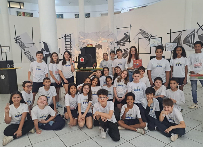 Estudantes do 5º ano da Escola Municipal Presidente Juscelino Kubitscheck foram ao Centro Municipal de Cultura Willy Zumblick, em Tubarão, visitar e participar de uma experiência artística inédita: a instalação “Arte a Todo Vapor”.