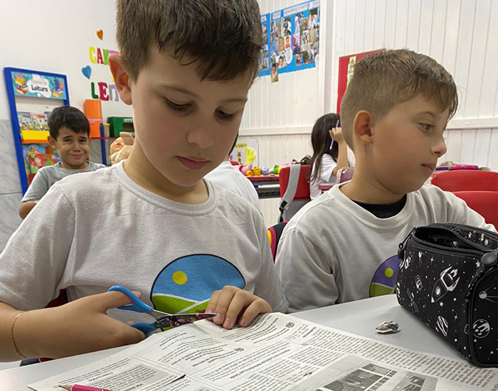 A professora do segundo ano do ensino fundamental, Monique, usou os jornais como recurso pedagógico e, posteriormente, entregou os jornais aos estudantes para que eles recortassem palavras com sílabas complexas. Já a docente Cristina, do pré-escolar, aproveitou os exemplares para que os pequenos procurassem e recortassem palavras que iniciassem com a letra C.
