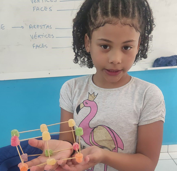 Uma atividade divertida e diferente em sala de aula: com balas de goma, os alunos do 3º ano da EMEB Manoel Rufino Francisco, de Tubarão, construíram sólidos geométricos, como cubos, pirâmides e paralelepípedos.