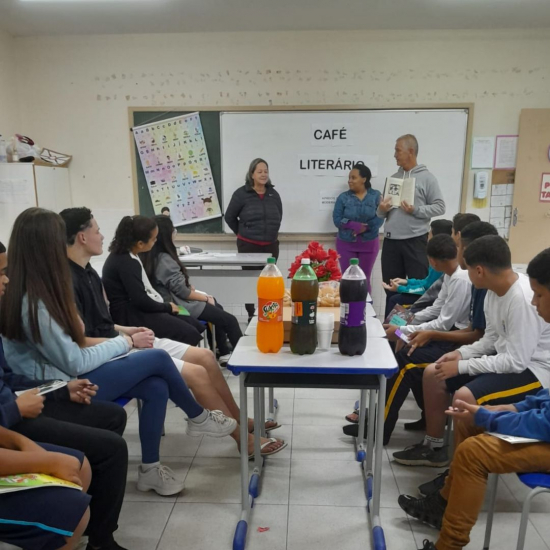 Com o objetivo de incentivar o prazer e o interesse dos alunos pelo mundo da leitura, a EMEB Vitório Marcon, de Capivari de Baixo, realizou o I Café Literário. A atividade foi realizada durante a aula de Língua Portuguesa, da professora Débora Bernardo dos Santos de Medeiros, para fazer com que os estudantes comecem a perceber as imensas possibilidades de um livro.