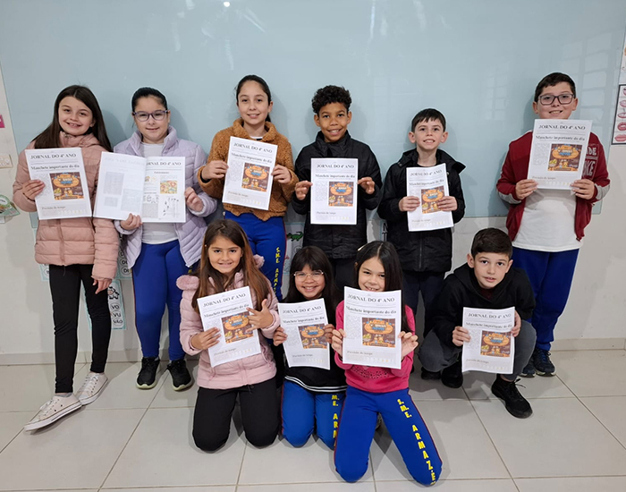Por meio do DS em sala, eles participaram de um projeto pedagógico que teve como base a produção de um jornal, com reportagens escritas por eles próprios, abordando assuntos ligados à escola, ao bairro e à cidade. Para isso, os estudantes também se inspiraram no conteúdo do jornal Diário do Sul, observando sua estrutura e linguagem para montar o próprio jornal.