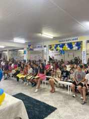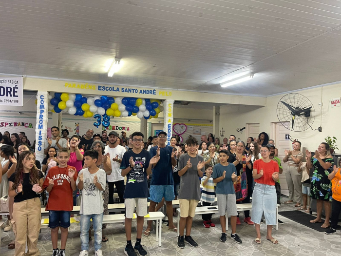 Para comemorar os 38 anos, a EMEB Santo André, de Capivari de Baixo, realizou uma atividade especial para alunos, professores e comunidade escolar, aliada ao Dia da Família na Escola.