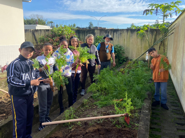 Alunos da Escola Municipal de Educação Básica Vitório Marcon, no bairro Ilhotinha, em Capivari de Baixo, fazem questão de cuidar da horta da instituição de ensino. Ao participar da ação, eles passaram a conhecer o processo produtivo e ainda mudaram os hábitos alimentares.