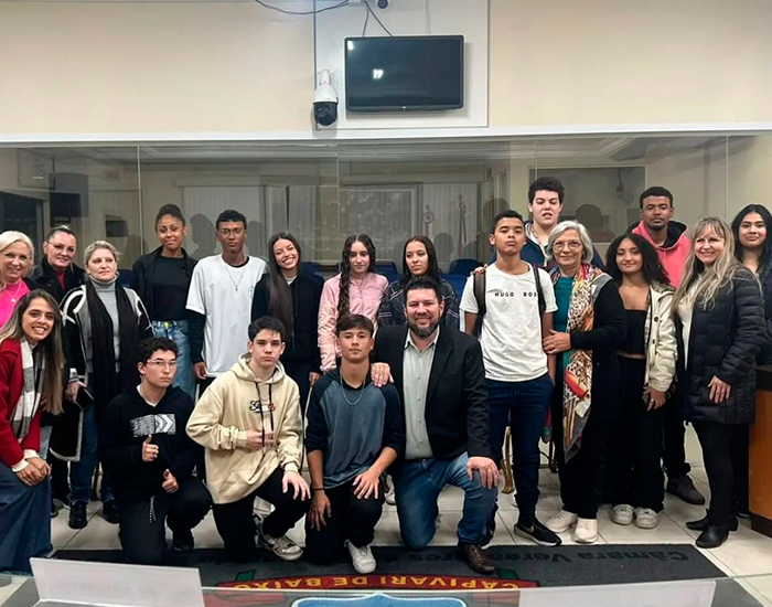 Estudantes do primeiro ano do ensino médio da Escola Otto Feuerschuette, de Capivari de Baixo, estiveram ontem em visita à Câmara Municipal para aprender sobre o papel do Poder Legislativo.