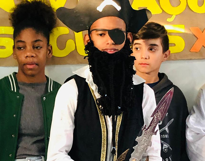 Com o tema voltado às grandes navegações dos séculos XV e XVI, foi feito um recorte na história, introduzindo a pirataria, que surgiu nessa época. “Para estimular a curiosidade dos alunos, fizemos um recorte e destacamos o lendário Barba Negra, que comandava uma espécie de crime organizado nos mares”, explica a professora.