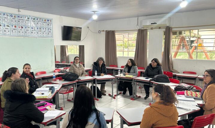 Os encontros foram organizados por turnos e segmentos de ensino, contemplando desde a Educação Infantil até os anos finais do Ensino Fundamental.