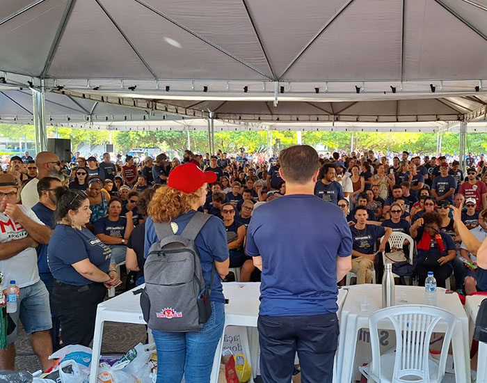 A decisão de suspender a greve foi anunciada após assembleia extraordinária realizada na Praça Tancredo Neves, em Florianópolis. O sindicato afirmou que houve um longo debate da categoria sobre os encaminhamentos e o cenário de mobilização.