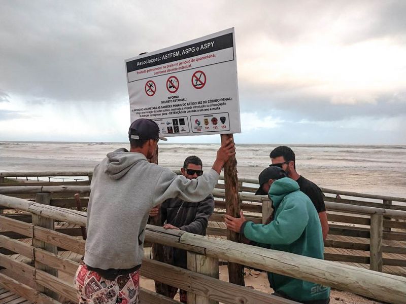 A Associação de Surf e Town in do Farol, juntamente com a Associação de Surf da Praia da Galheta e a Associação de Surf do Ypuã, fixou placas nas praias da região da Ilha indicando que está proibido permanecer na praia neste período de quarentena.